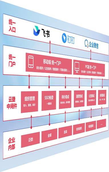 对协作平台提供支持服务,,支持企业应用与协作平台对接,,包含组织同步、、、消息集成、、、、待办集成等。。。支持目前主流的协作平台:钉钉、、、企微和飞书。。。。